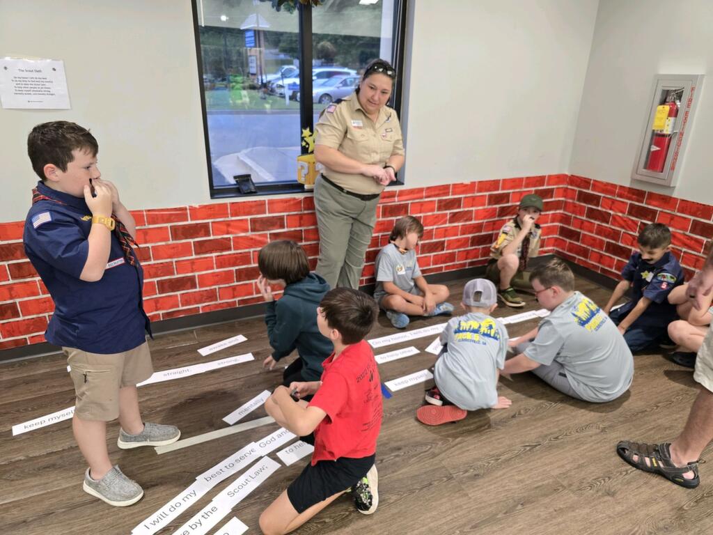 Our scouts were taught the Scout Oath, Scout Law, 6 essentials,Cub Scout sign, Cub Scout salute, Cub Scout handshake and more.